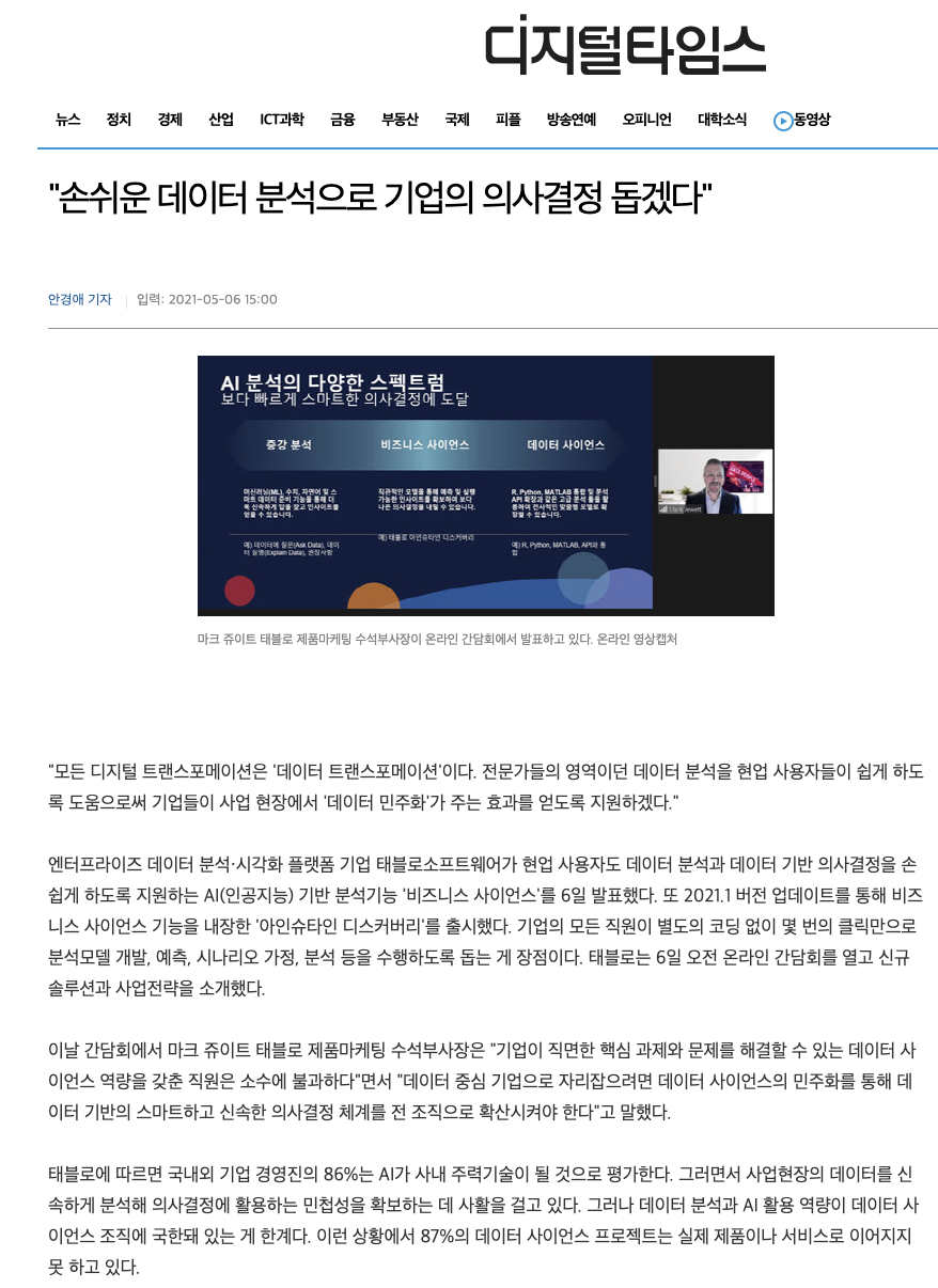 Tableau Business Science and 2021.1 Launch Announcement in Korea